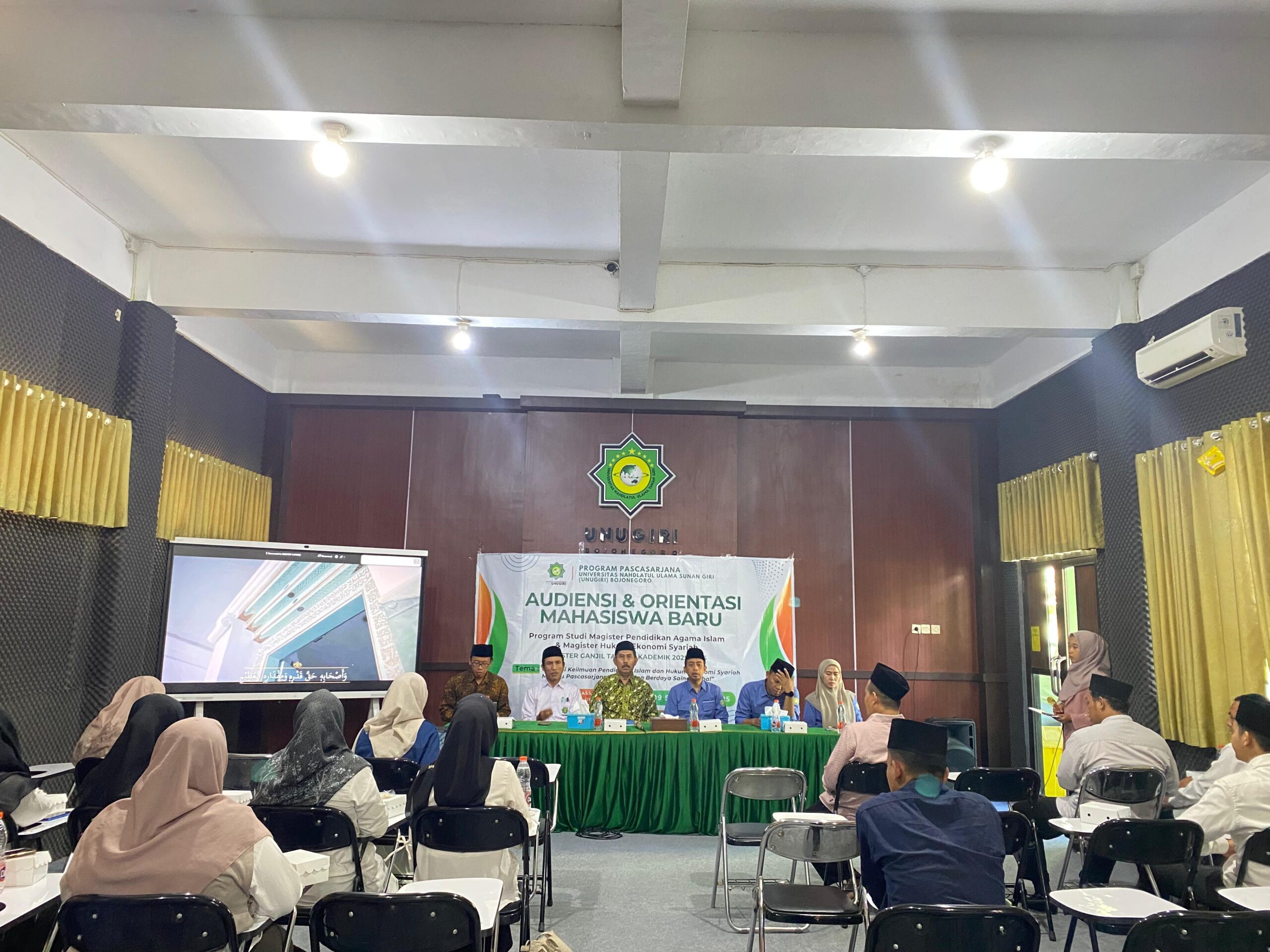 Bojonegoro – Program Pascasarjana Universitas Nahdlatul Ulama Sunan Giri (UNUGIRI) menggelar kegiatan Audiensi & Orientasi Mahasiswa Baru untuk Program Studi Magister Pendidikan Agama Islam (MPAI) dan Magister Hukum Ekonomi Syariah (MHES) Semester Ganjil Tahun Akademik 2025/2026 pada Selasa, 09 September 2025 di Smart Class, Gedung Pascasarjana Lantai 1.